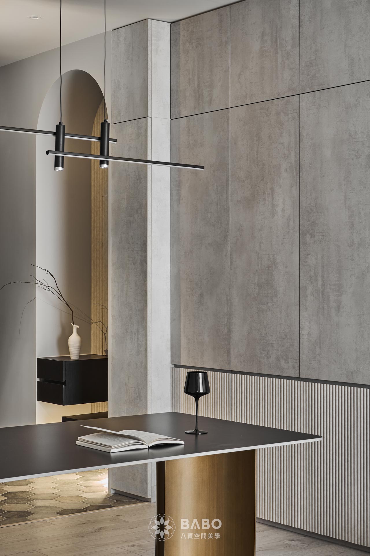 ▲整體以灰色調為基底,營造沉穩洗練的氛圍,並巧妙加入木紋格柵與灰色玻璃,透過跳色與異材質的搭配,讓玄關與餐廳之間自然過渡、不顯突兀。