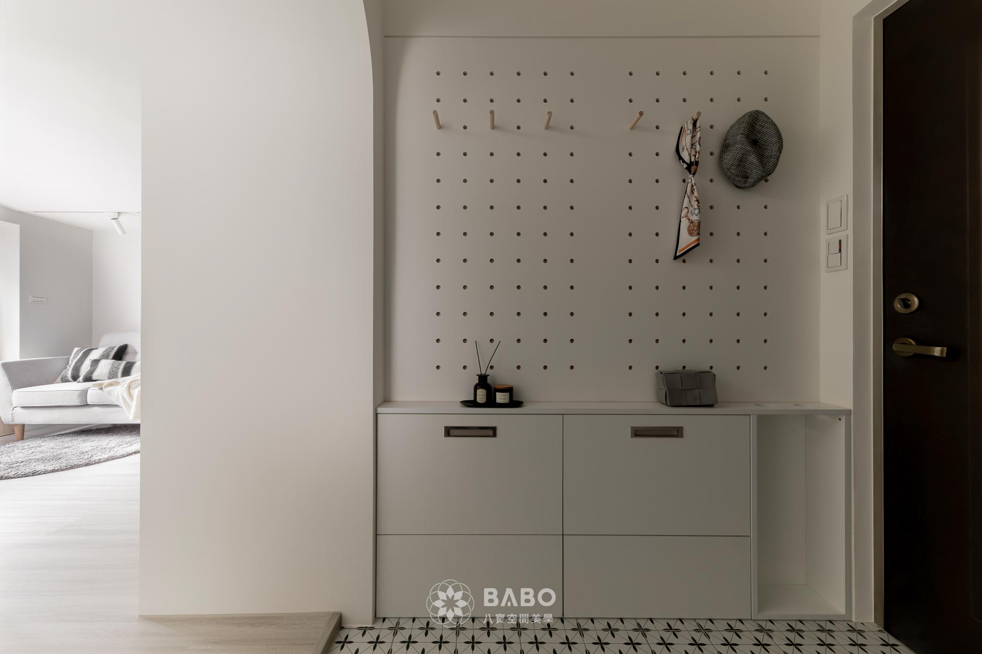 ▲大面積的洞洞板讓業主愛不釋手,解決了大部分玄關區域的收納需求,不論是帽子、外套、或是絲巾小物,取用方便的同時也能方便歸位。