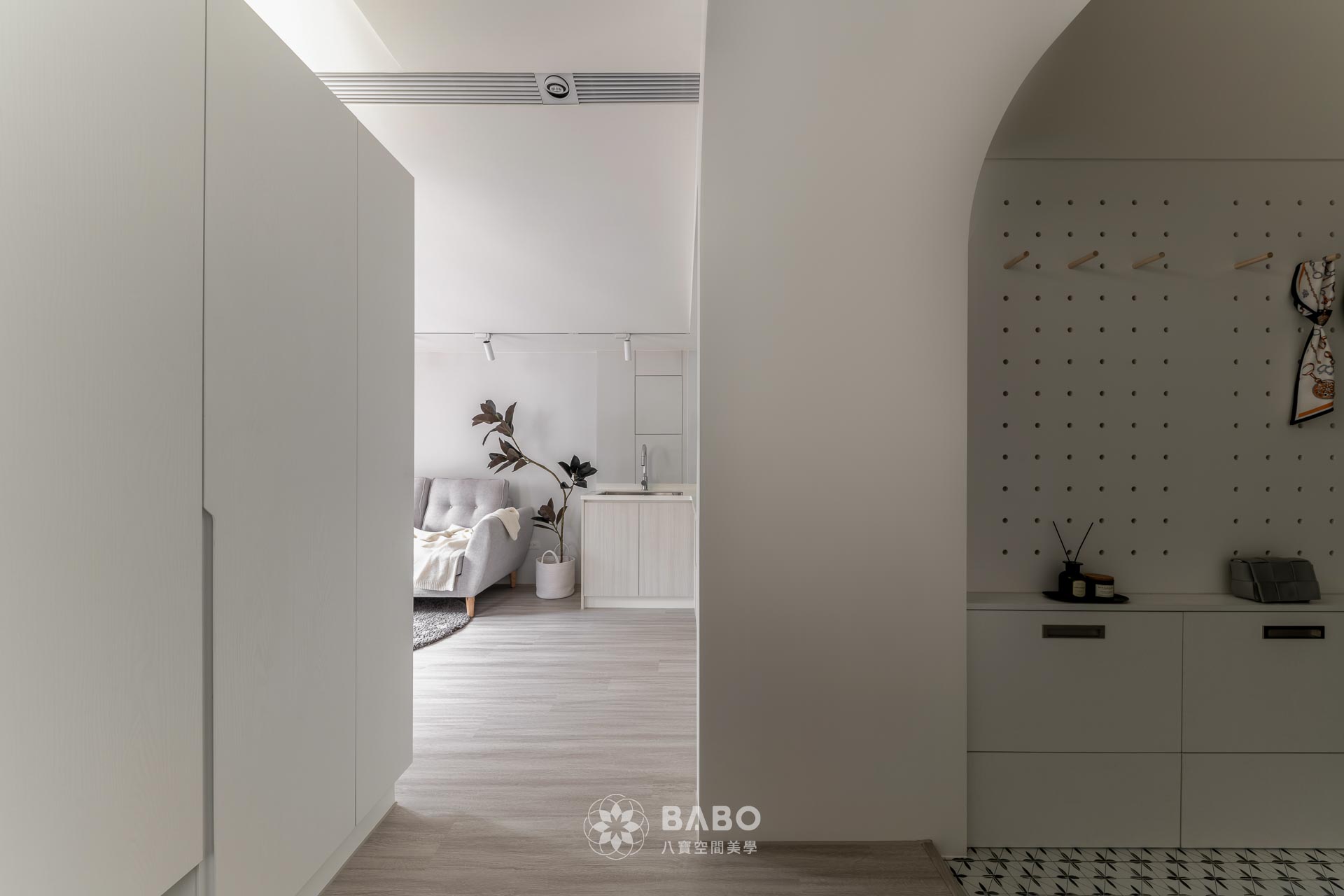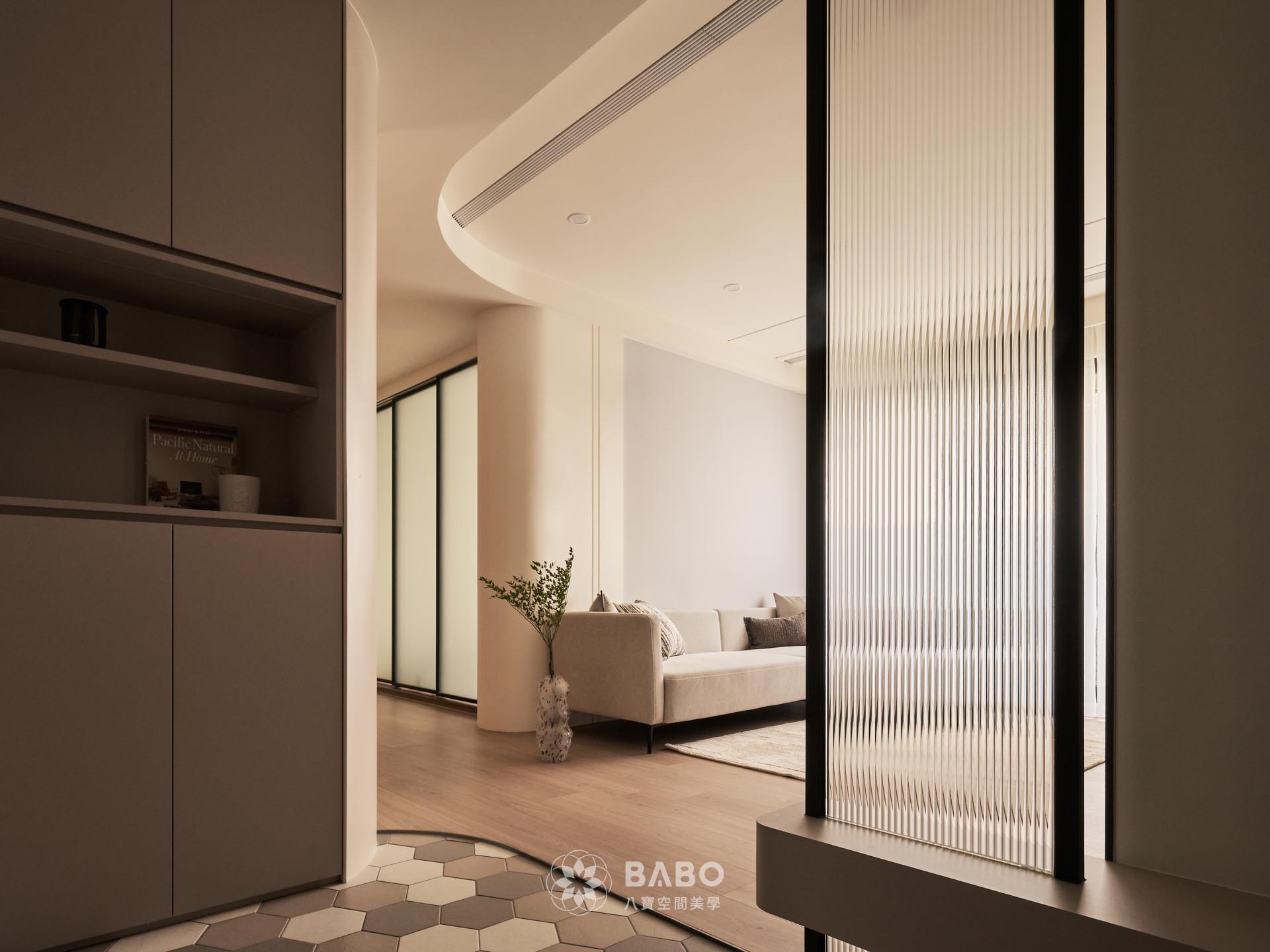 ▲玄關風格延續整體室內風格,且設計師特別以弧形門框作為空間的視覺亮點,讓整個空間顯得不那麼「無聊」,弧形線條不僅讓整體空間多了圓潤與溫度,也在視覺上打破傳統直線結構的拘謹,讓空間感變得更流動、更輕盈。搭配燈光或材質變化。